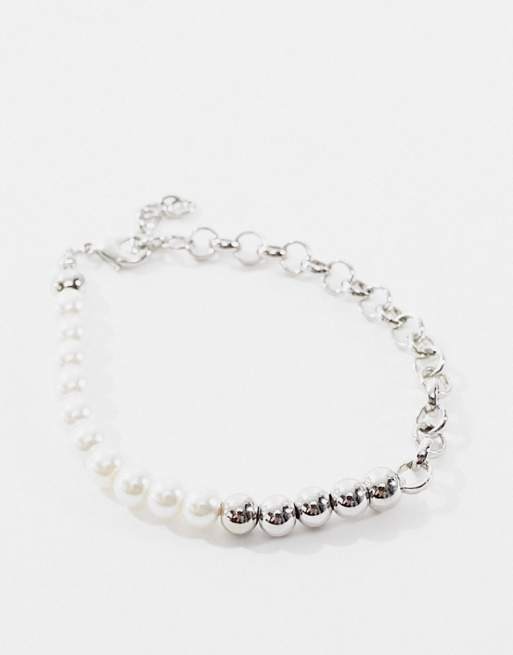 ASOS DESIGN half chain and pearl bracelet in silver tone