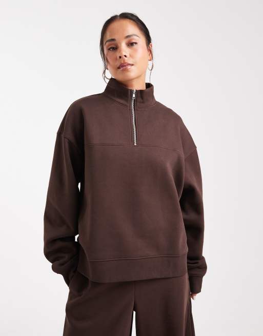 ASOS DESIGN half zip brushback sweatshirt in chocolate