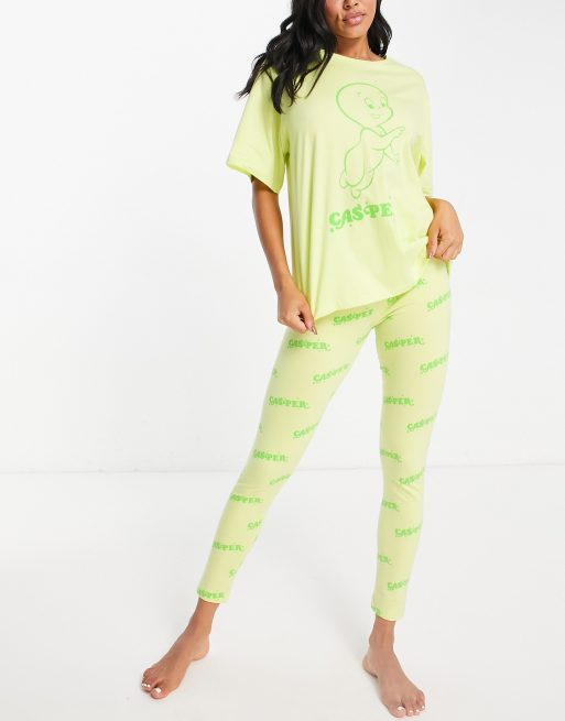 ASOS DESIGN Halloween Casper oversized tee & legging pyjama set in lime