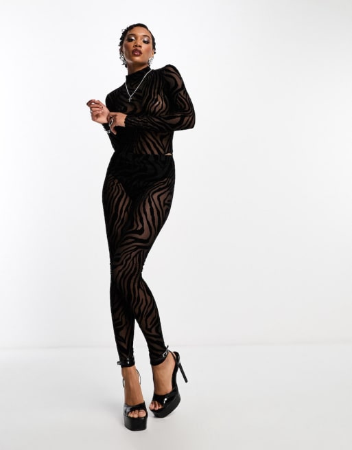 ASOS DESIGN Halloween co-ord devore long sleeve bodysuit and leggings in animal
