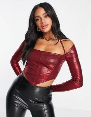 ASOS DESIGN Halloween ultra wide neck top with choker in red foil