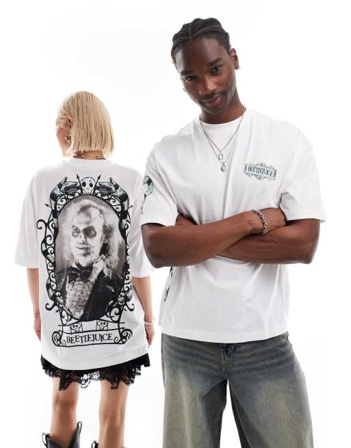 ASOS DESIGN Halloween unisex oversized t-shirt with Beetlejuice prints in white