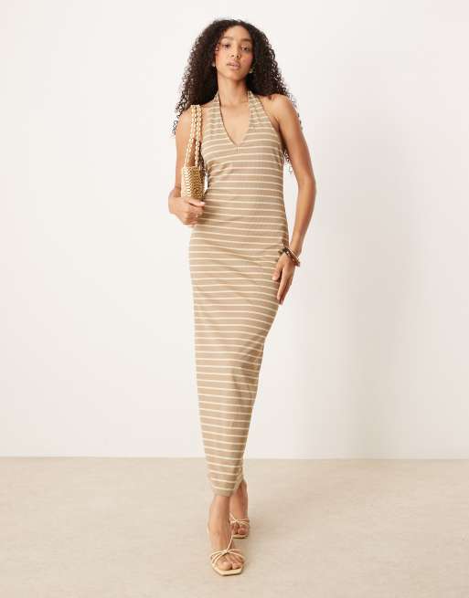 ASOS DESIGN halter maxi stripe dress in brown