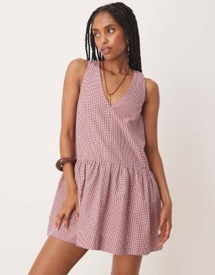 ASOS DESIGN halter neck drop waist mini dress in red gingham
