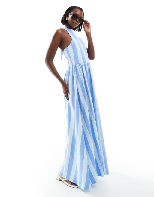 ASOS DESIGN halter neck low back maxi dress in blue stripe
