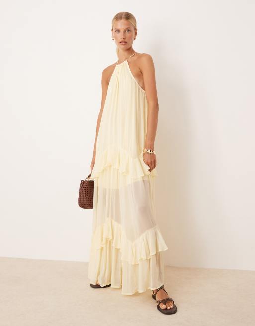 ASOS DESIGN halter tiered ruffle maxi in lemon