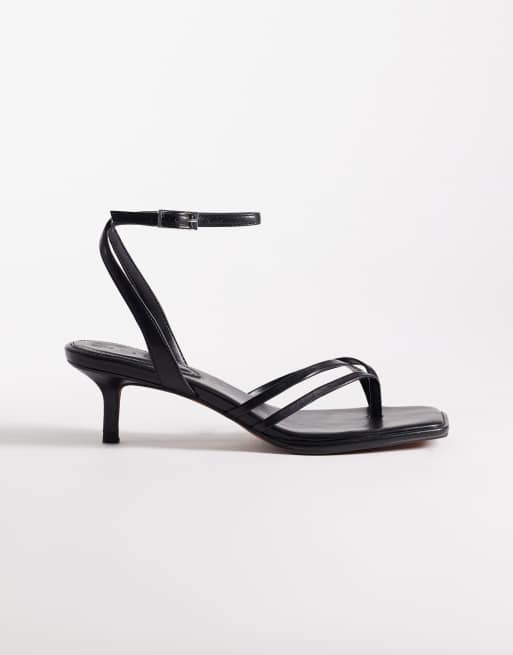 ASOS DESIGN Harbour minimal strappy toe thong kitten heel sandals in black