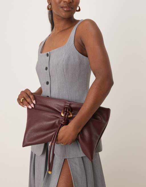 ASOS DESIGN hardware detail wrap flap clutch bag in burgundy