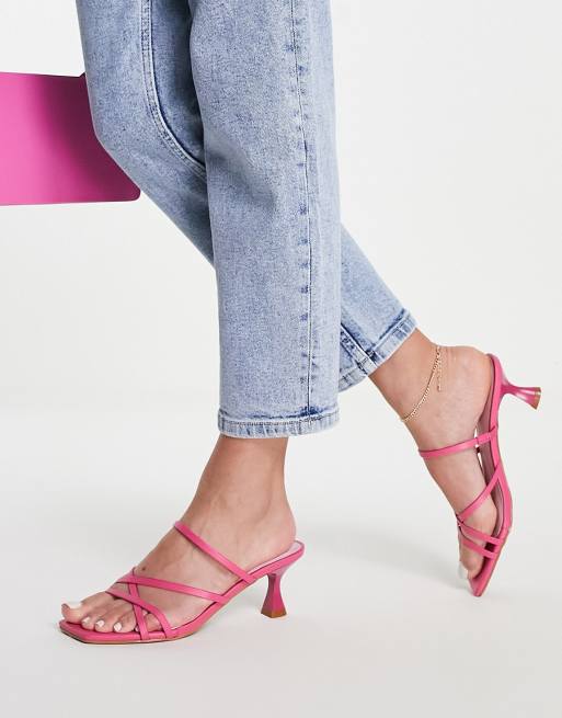ASOS DESIGN Hart strappy mid heeled mules in pink