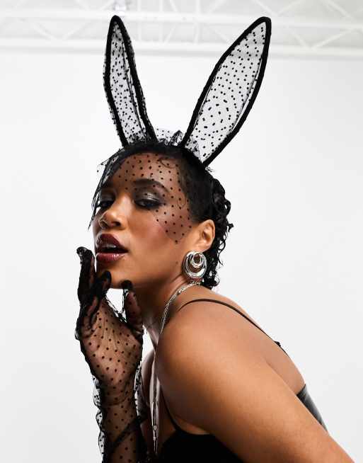 ASOS DESIGN headband with bunny ears and glove set in black mesh design