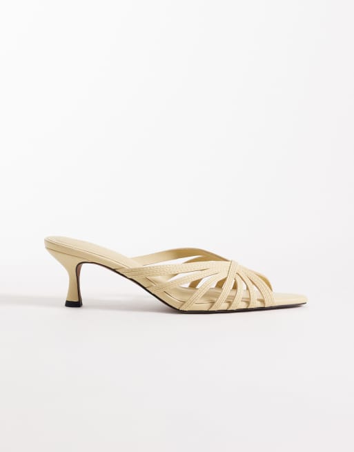 ASOS DESIGN Healing strappy peep toe mid heel mules in buttermilk