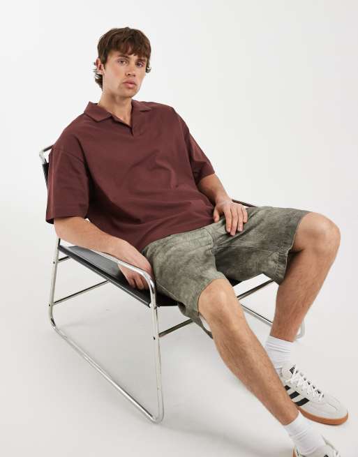 ASOS DESIGN heavyweight boxy oversized revere polo in brown.