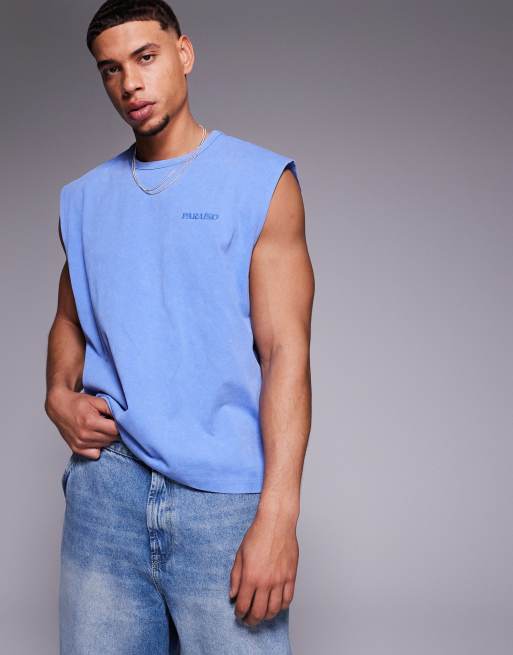ASOS DESIGN heavyweight boxy oversized tank with text graphic in washed blue