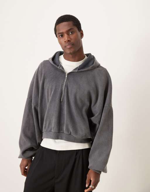 ASOS DESIGN heavyweight extreme oversized boxy hoodie with half zip in washed grey rib