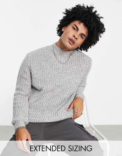 ASOS DESIGN heavyweight fisherman turtle neck jumper in grey twist