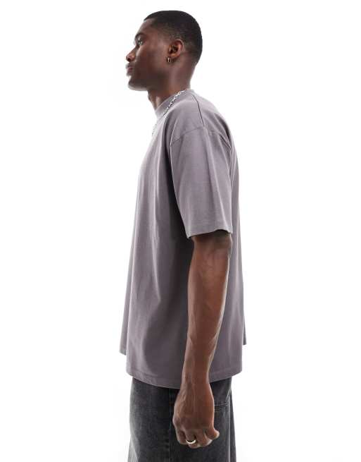 ASOS DESIGN heavyweight oversized high neck t-shirt in charcoal