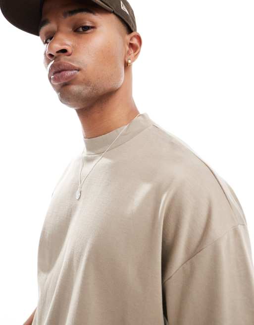 ASOS DESIGN heavyweight oversized high neck t-shirt in stone