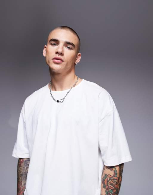 ASOS DESIGN heavyweight oversized open neck t-shirt in white