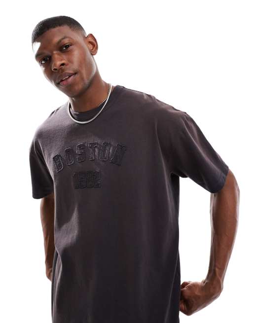 ASOS DESIGN heavyweight oversized t-shirt in washed black with chest applique