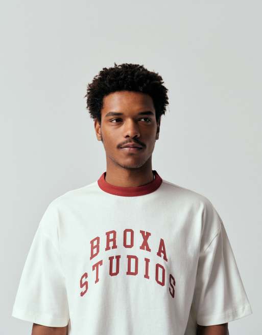 ASOS DESIGN heavyweight oversized t-shirt with text graphic in off white