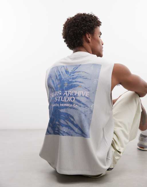 ASOS DESIGN heavyweight oversized tank co-ord with palm graphic in grey rib fabric