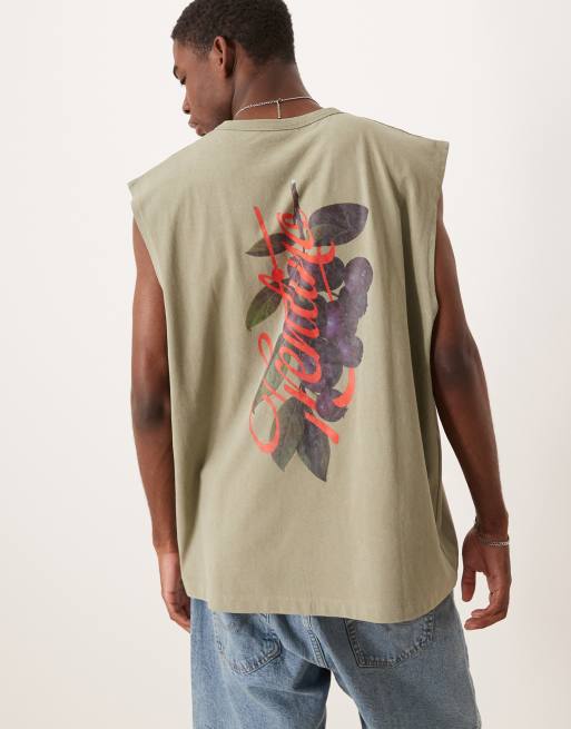 ASOS DESIGN heavyweight oversized tank with fruit graphic in washed khaki