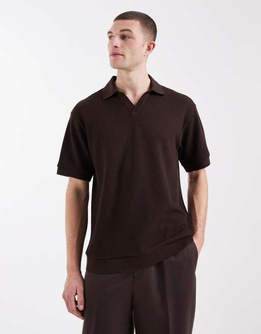 ASOS DESIGN heavyweight relaxed polo in brown waffle