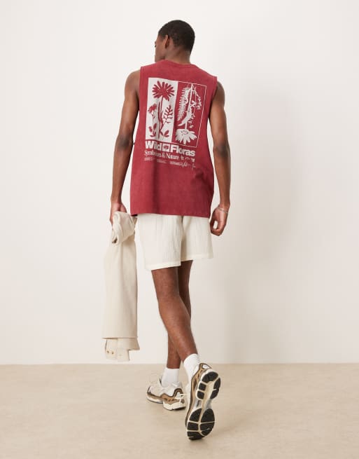 ASOS DESIGN heavyweight relaxed tank with floral graphic in washed red