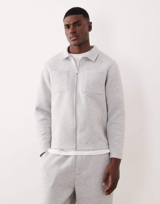 ASOS DESIGN heavyweight relaxed zip through jacket in scuba-style fabric in grey marl - LGREY