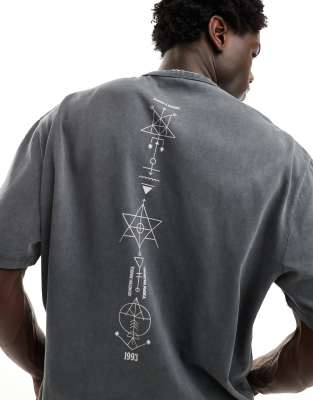 ASOS DESIGN heayweight oversized t-shirt in washed black with symbol spine print