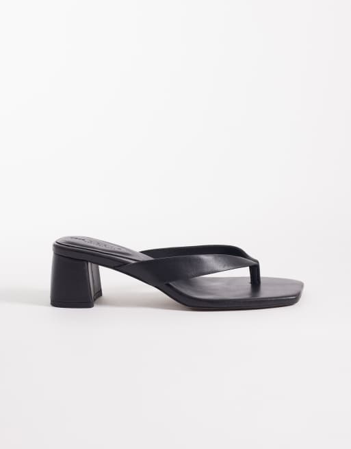 ASOS DESIGN Hideout leather block heeled toe thong sandals in black