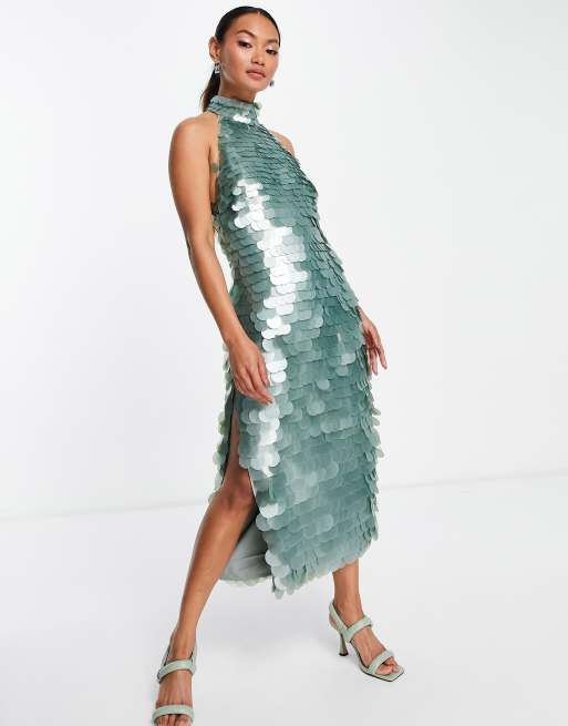 ASOS DESIGN high neck disc sequin midi dress