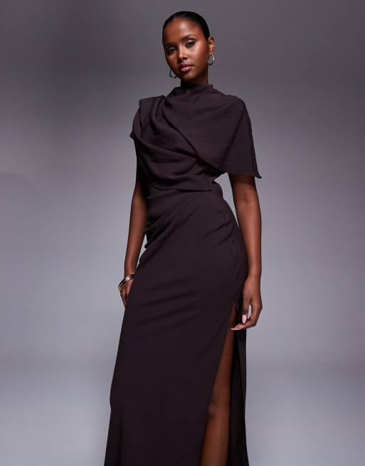 ASOS DESIGN high neck drape bodice cape maxi dress in chocolate