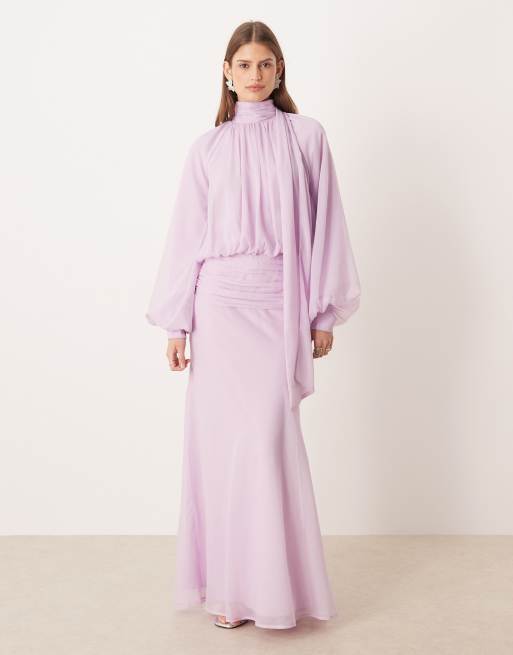 ASOS DESIGN high neck drape chiffon maxi dress with neck tie in lilac