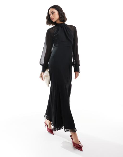 ASOS DESIGN high neck maxi dress with godet hem in black