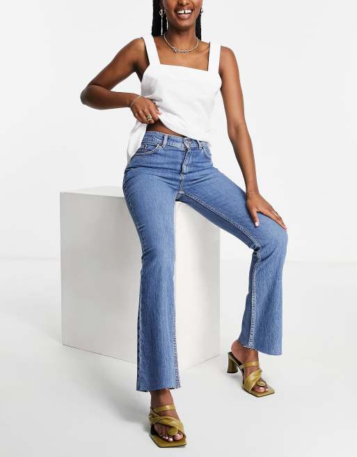 ASOS DESIGN high rise '70's' stretch flare jeans in midwash