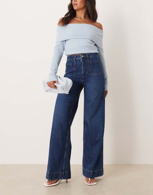 ASOS DESIGN high waist wide leg jeans with front pockets in dark wash