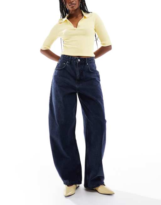 ASOS DESIGN high waisted barrel leg jeans in blue black