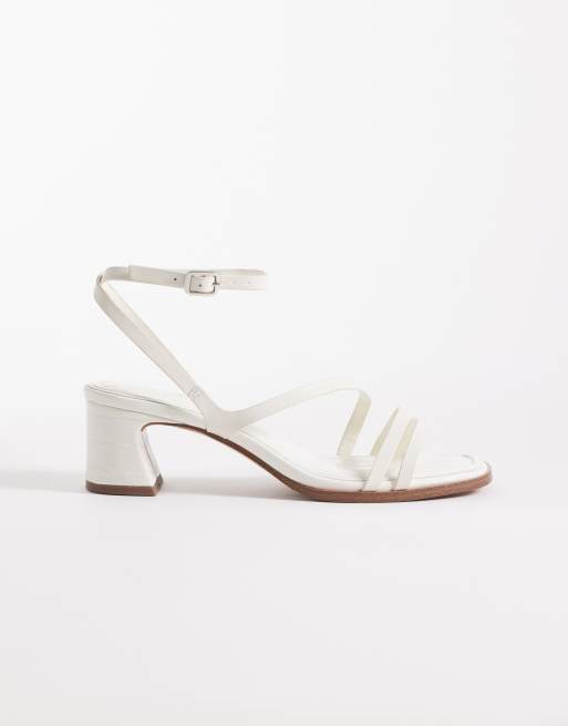 ASOS DESIGN Honeybee mid block heeled sandals in off white croc