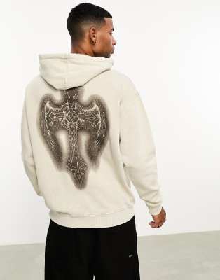 ASOS DESIGN hoodie in washed beige with grunge back print