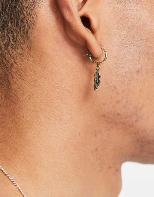 ASOS DESIGN hoop earrings with asymmetric feather design in gold tone