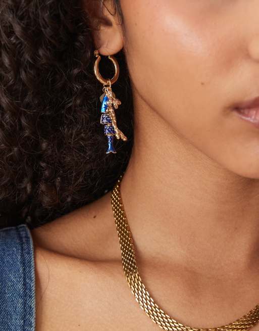 ASOS DESIGN hoop earrings with fish charms in gold tone