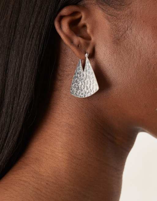ASOS DESIGN hoop earrings with hammered squared detail in silver tone