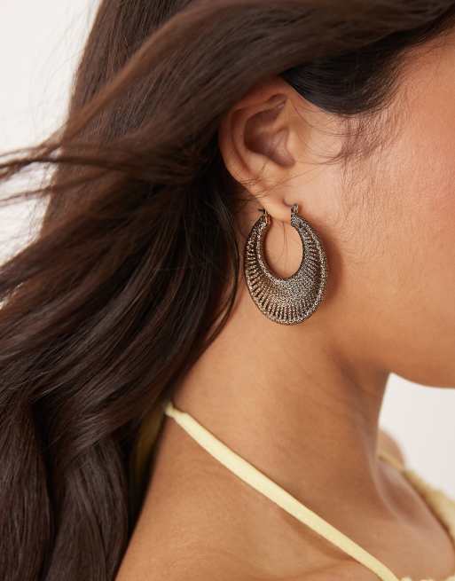 ASOS DESIGN hoop earrings with weave detail in bronze