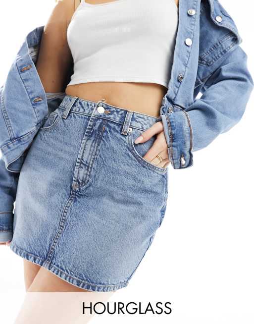 ASOS DESIGN Hourglass denim high waist mini skirt in midwash blue