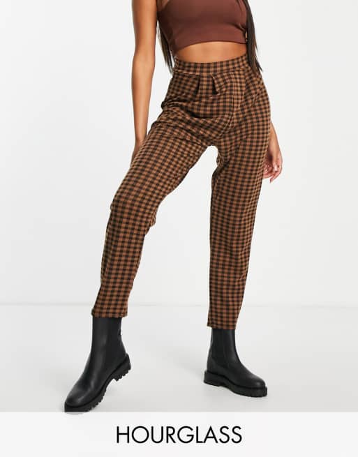 ASOS DESIGN Hourglass jersey tapered suit trouser in chocolate gingham