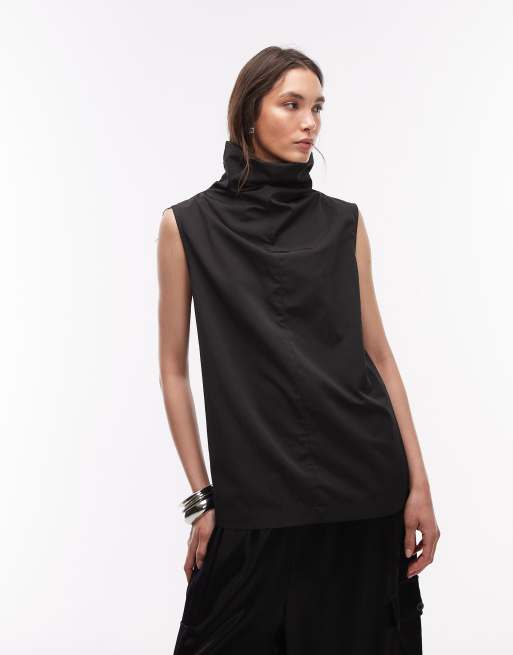 ASOS DESIGN iconic funnel neck sleeveless top in black