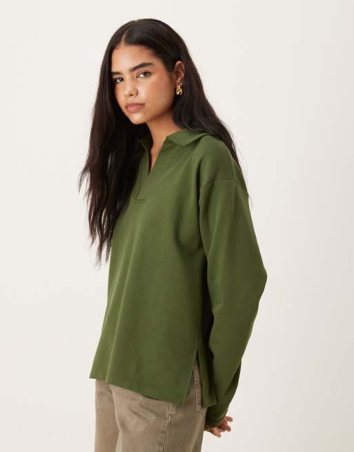 ASOS DESIGN interlock long sleeve rugby top in khaki