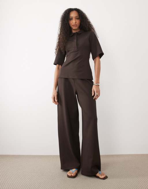 ASOS DESIGN interlock wide leg trouser co-ord in chocolate