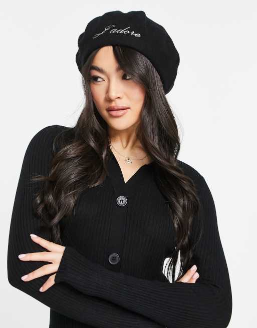 ASOS DESIGN J'adore wool beret in black